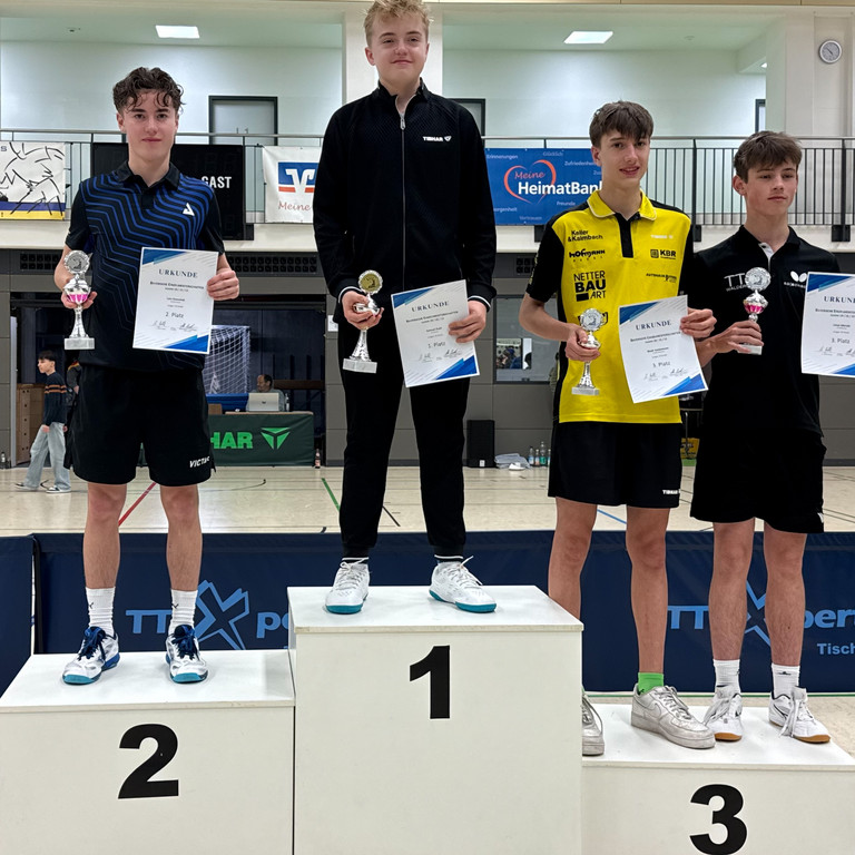 Einen Favoritensieg feierte Julius Werner (DJK SpVgg Effeltrich) im Einzel der Jungen 15, der lediglich beim 3:2 im Viertelfinale gegen David Maximilian Dunajevski (FC Bayern München) ins Wanken geriet. In Halbfinale gegen Leopold Schreindorfer (DJK Hafner Straubing) sowie im Endspiel gegen Elias Faroqi (TTC Freising-Lerchenfeld) blieb Werner im Anschluss ohne Satzverlust. Bronze ging an Schreindorfer und Simon Steininger (MTV Ingolstadt). In einem spannenden und attraktiven Doppel-Finale triumphierten Felix Heidemann (TV Hilpoltstein) und Steininger nach 0:2-Rückstand 3:2 über Werner und seinen Effeltricher Vereinskollegen Laurenz Knapp.