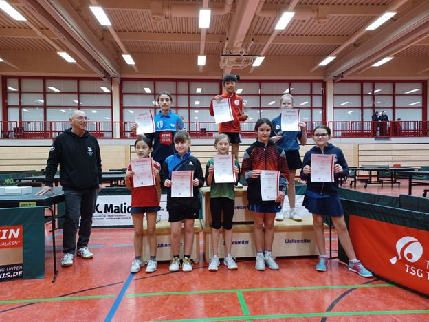 Bei den Mädchen marschierten Ye und Yllka Hajdari (SV Helfendorf) jeweils ohne Satzverlust bis ins Endspiel. Dort wurde es dann aber richtig spannend: Ye drehte zweimal einen Satzrückstand, um sich nach fünf umkämpften Sätzen mit dem Titel zu belohnen. Bronze sicherte sich Leni Schmidtlein (SpVgg Weiboldshausen) im Spiel um Platz drei gegen Annabella Zhang (FC Bayern München).