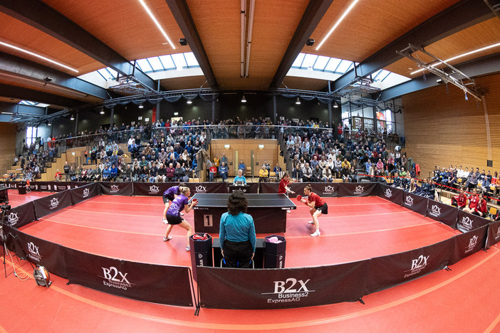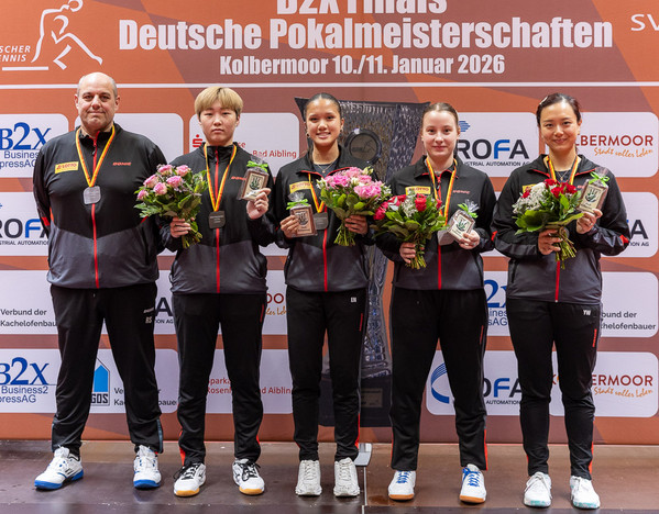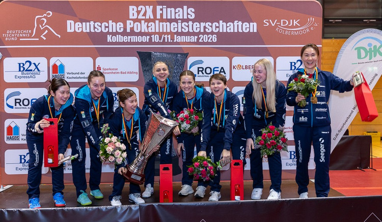 Tolle Stimmung, packende Matches, verdienter Sieger: Bei den B2X Finals passte am Sonntag - aus bayerischer Sicht - fast alles. Denn der Lokalmatador SV DJK Kolbermoor war vor ausverkuftem Haus drauf und dran, gegen den Topfavoriten Berlin in das Finale einzuziehen und nach 2019 und 2022 möglicherweise zum dritten Mal den Pokal in die Höhe zu recken. Doch Berlin hielt dem Druck in starker Manier und vor allem mit dem überragenden 19-jährigen Abwehrass Yuka Kaneyoshi stand, setzte sich mit 3:2 im Halbfinale durch und holte sich im Endspiel durch ein klares 3:0 über den TTC Weinheim zum elften Mal den Titel.