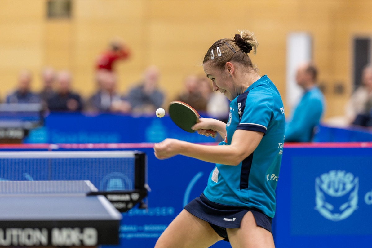 Im hinteren Paarkreuz deutete sich anschließend ein Vorteil für die Gäste an. Dora Cosic und Naomi Pranjkovic versuchten zwar alles, doch Franziska Schreiner und Chantal Mantz brachten Langstadt mit zwei Erfolgen 4:2 in Front.