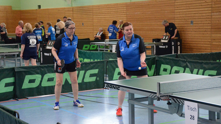 Beier kämpfte mit Elise Flegel (SuS Emden) gegen Hannelore Dillenberger (Tus 1904 Himmighofen)/Ute Weller (ESV Lok Erfurt) vergebens (1:3) um den Viertelfinaleinzug, während Karen Hellwig mit Cornelia Bienstadt (TTC Langen) gegen Isabella Loos/Rita Reunert mit 3:0 die Oberhand behielten und gleich danach ihr Viertelfinale spielten. Maria Gaftea (Rumänien)/Isik Ertufan (Türkei) gewann zwar den ersten Satz 11:2, doch dann drehten die Deutschen auf. 3:1 hieß es am Ende. Im Halbfinale sorgten Ingeborg Ulrich/Petra Jordan (Schweiz) für ein spannendes Duell. Hellwig/Bienstadt gerieten 8:11 in Rückstand, drehten aber mit 11:7 und 11:6 den Spieß um. Nach dem 9:11 konterten sie im Entscheidungssatz mit einem 11:6. Yue Xia Wang Friden/Eva Lindh hießen die Endspielgegnerinnen, denen Hellwig/Bienstadt alles abverlangten und das Pendel beim 8:11 und vor allem 10:12 auch in die andere Richtung hätte ausschlagen können. Satz drei mit 3:11 war dagegen eine klare Angelegenheit. Ulrich/Jordan hatten sich vor dem Duell gegen Hellwig/Bienstadt die Bronze-Medaille beim 3:1 gegen Freia Runge (TSV Lunestedt)/Sabine Hänert (THW Kiel) gesichert.