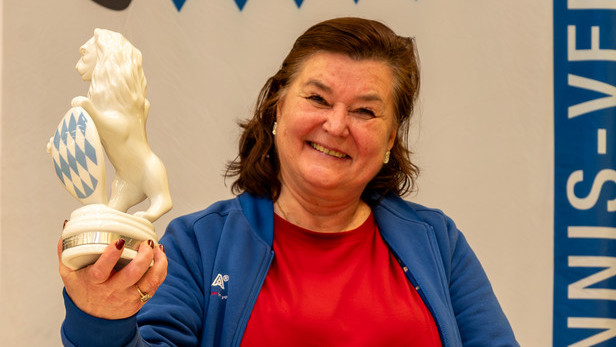 Bei der Bayerischen Seniorenmeisterschaft bleiben Überraschungen in sportlicher Hinsicht nicht aus. Eine Überraschung ist auf jeden Fall immer die Verkündigung des/der Gewinner/-in des Ehrenpreises - der Bayerische Löwe. So auch in diesem Jahr, als Daniela Baumann (SB Versbach) nicht damit rechnete, dass sie diesmal an der Reihe ist. Als Verbandsfachwart Seniorensport Michael Hellwig die Gewinnerin als erfolgreiche Spielerin bezeichnete, dachte sich Baumann noch nichts. Spätestens als Hellwig aber auf ihr Amt bei DER CLUB - Deutsche Tischtennis Senioren (Vizepräsidentin Öffentlichkeitsarbeit) - zu sprechen kam, war ihr klar, auf wen diesmal die Wahl gefallen ist.