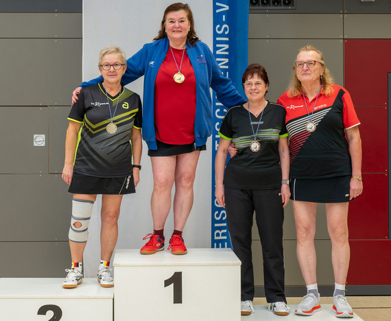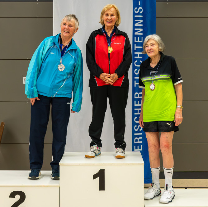 Vor zwei Jahren gewann Petra Rubin (TTC Neunkirchen am Brand 2006) bei den Seniorinnen 65, vergangenes Jahr reichte es für den Bronzerang. Nun, zu den Seniorinnen 70 aufgerückt, glänzte die 69-Jährige wie der gleichnamige Edelstein und gewann alle fünf Spiele mit 3:0. Hauchdünn fiel die Entscheidung in der Gruppe bei den Seniorinnen 80 aus. Drei Spielerinnen hatte zwei Siege und eine Niederlage auf dem Konto, letztlich entschied das beste Satzverhältnis (8:4) zu Gunsten von Rosi Berg (TSV Oberstdorf). 7:4 lautete es bei Sonnhild Kayser (SV-DJK Taufkirchen), 7:5 bei Gisela Fiedler (TSV Katzwang).