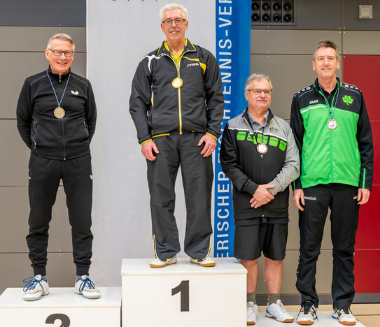 Abonnement-Sieger Dieter Brick (TV Freyung) gelang bei den Senioren 75 das Kunststück, nach einem zähen ersten Satz (12:10) seinen Konkurrenten Walter Bachmann (TSV Georgensgmünd) mit 11:0 vom Tisch zu fegen und schließlich mit 11:2 den Sieg in trockene Tücher zu bringen. Seinem diesjährigen Doppelpartner Hans Blum (TSV Dachau) ging er diesmal aus dem Weg, Bachmann eliminierte Blum im Halbfinale in drei Sätzen.