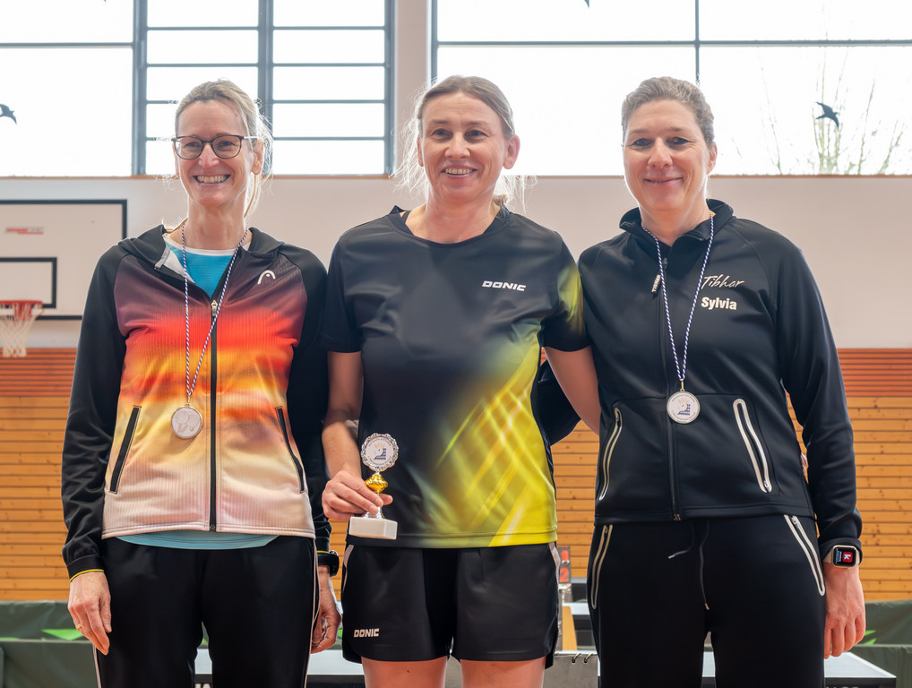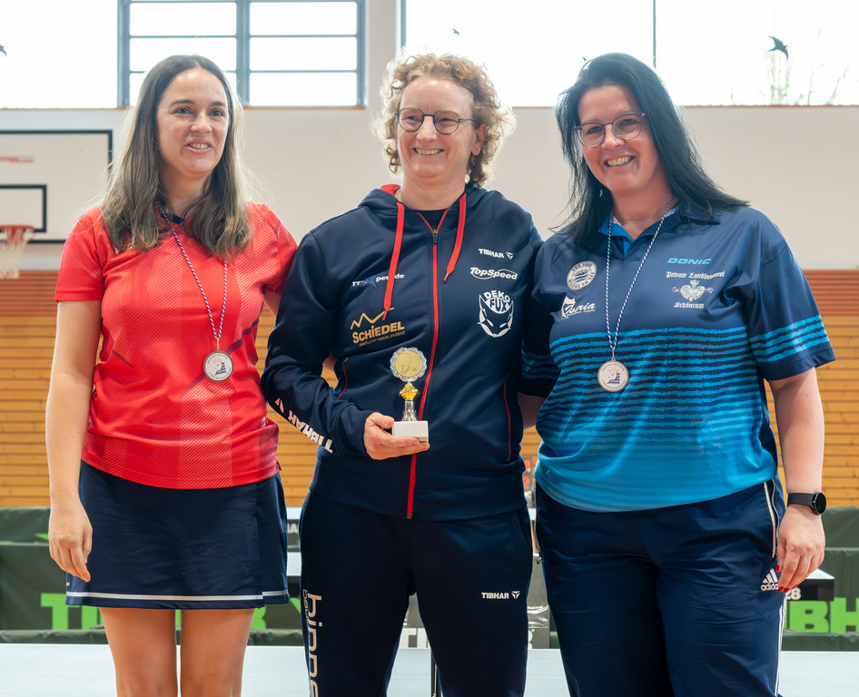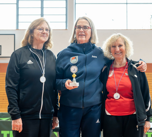 Das Maß aller Dinge bei den Seniorinnen 40 war Sandra Dusil (TSV Zusmarshausen), die in der Gruppe alle vier Spiele mit 3:0 gewann. Gar die Bälle entschieden bei den Seniorinnen 55 zugunsten von Polina Goldenberg (TB Deutsche Eiche/ASV Regenstauf). Goldenberg hatte wie Petra Kaffl (TSV Ottobrunn) am Ende drei Siege und 10:6 Sätze zu Buche stehen, aber mit +34 Bällen konnte sie Kaffl (+18), die sie im direkten Duell mit 3:1 geschlagen hatte, deutlich distanzieren.