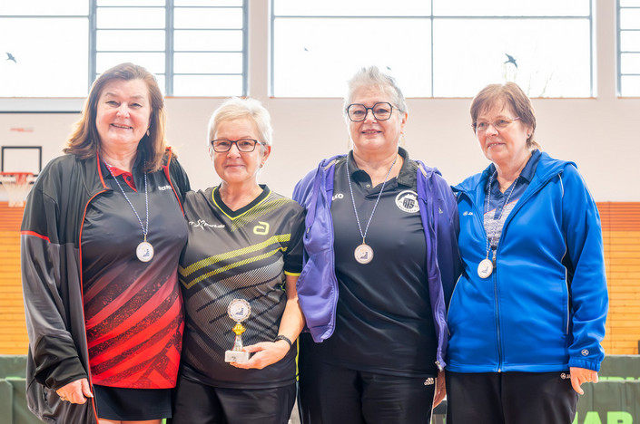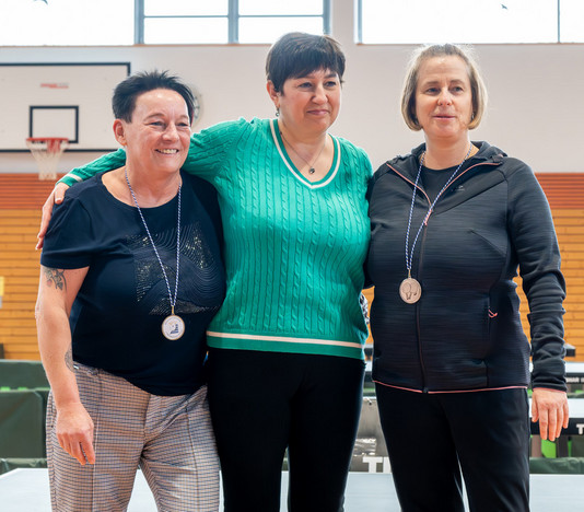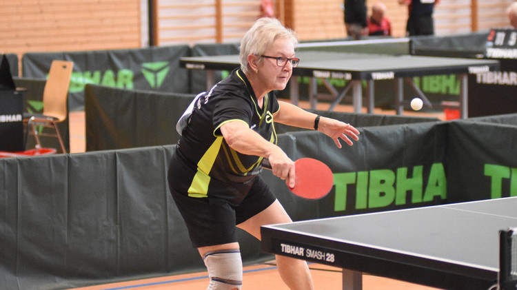 Petra Rubin (TTC Neunkirchen am Brand 2006) dominierte die Gruppe bei den Seniorinnen 70, nur gegen die Zweite Christa Geist (TSV Lohr) musste sie einen Satz abgeben.