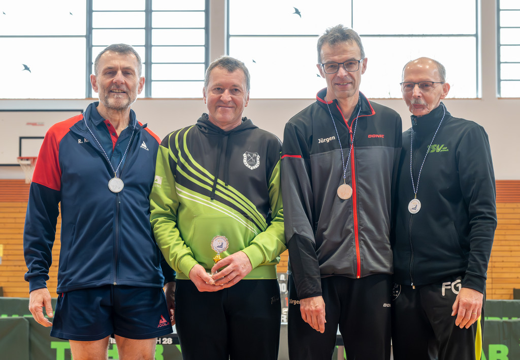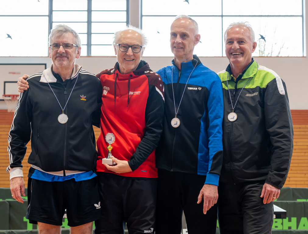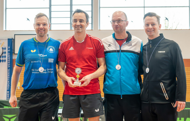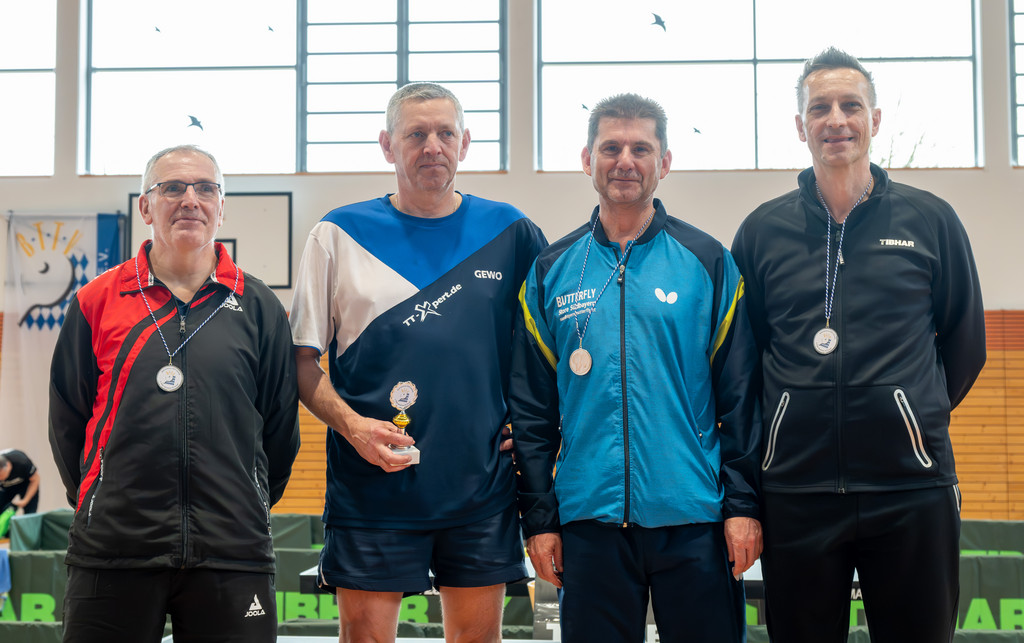 Bei den Bayerischen Meisterschaften der Senioren, durchgeführt vom FC Salzweg, gab es im Einzel ein spannendes Finale bei den Senioren 60. Reiner Eckert (TSV Oberalteich) musste gegen Rainer Kliemt (1. FC Eschenau) den ersten Satz (10:12) abgeben. Mit 11:7 und 11:3 gelang ihm eine 2:1-Führung, doch Kliemt hielt dagegen. Das 8:11 bedeutete den Gleichstand, ehe Eckert mit 11:6 den Deckel draufmachte. Der Verbandsligaspieler war vergangenes Jahr noch bei den Senioren 55 am Start und schied im Viertelfinale aus.