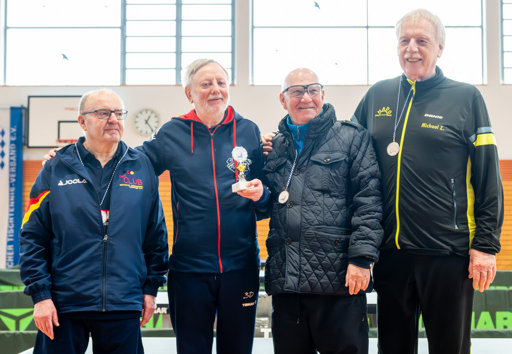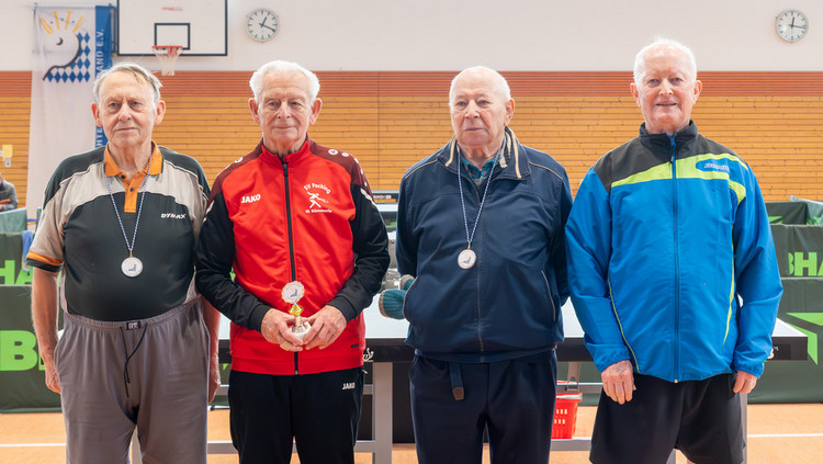 Ebenfalls eng ging es bei den Senioren 65 zwischen Matthias Löw (TSV Aichach) und Robert Fallica (TSV Ottobrunn) zu. Hier lag Löw 0:1 und 1:2 hinten, ehe er mit 11:9 und 11:7 den Spieß noch umdrehte. Als Stehaufmännchen erwies sich Dieter Brick (TV Freyung) bei den Senioren 75. 0:2 lag er schon gegen Hans Blum (TSV Dachau) im Hintertreffen, doch Brick holte sich in einem Spiel auf des Messers Schneide mit 11:9, 11:8 und 11:9 noch den Sieg.