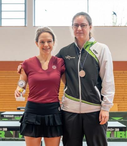 Bei den Seniorinnen 60 hatte Karen Hellwig (BCF Wolfratshausen) in der Vergangenheit schon mehrmals Gerti Dietrich (DJK SB Regensburg) den Vortritt lassen müssen - wie im Vorjahr beim 2:3 und 2023 bei der DM mit 1:3. Nicht aber diesmal, mit 3:2 (5:11, 11:4, 7:11, 11:6, 11:8) behielt Hellwig die Oberhand.