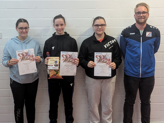 Da sie jedoch bei den Damen A mitantreten durfte, gab es hier ein 4er-Feld im Jeder-gegen-Jeden-Modus. Wie zu erwarten gewann dieses Feld Anna Walter vom MTV Ingolstadt, die alle Spiele klar für sich entscheiden konnte. Dahinter folgte Eileen Sahiner (DJK SB Landshut).