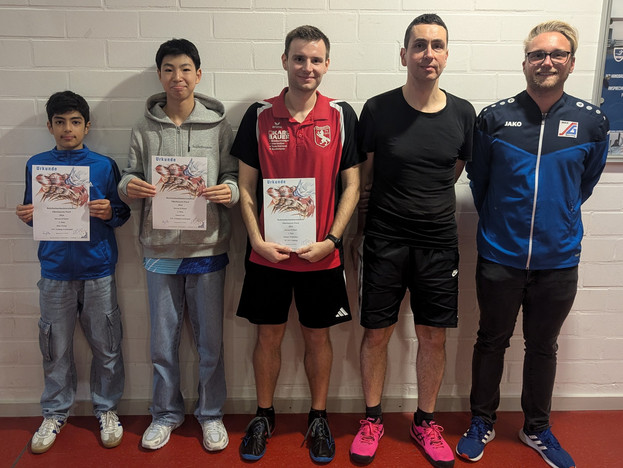 Etwas schwieriger hatte es da schon der Gewinner der Klasse Herren C. In seiner Vorrundengruppe musste Roland Zeltler vom SV Buxheim noch eine Niederlage einstecken und kam nur auf Rang 2 in seiner Gruppe in das Hauptfeld. Dort jedoch spielte er sowohl das Viertel- als auch das Halbfinale souverän und auch im Finale behielt er die Oberhand. Dabei traf er auf einen alten Bekannten: Tobias Zeller (DJK Altdorf) war derjenige, der ihn in der Gruppenphase besiegen konnte. Doch im Finale drehte Roland das Spiel um und gewann mit 3:1.
