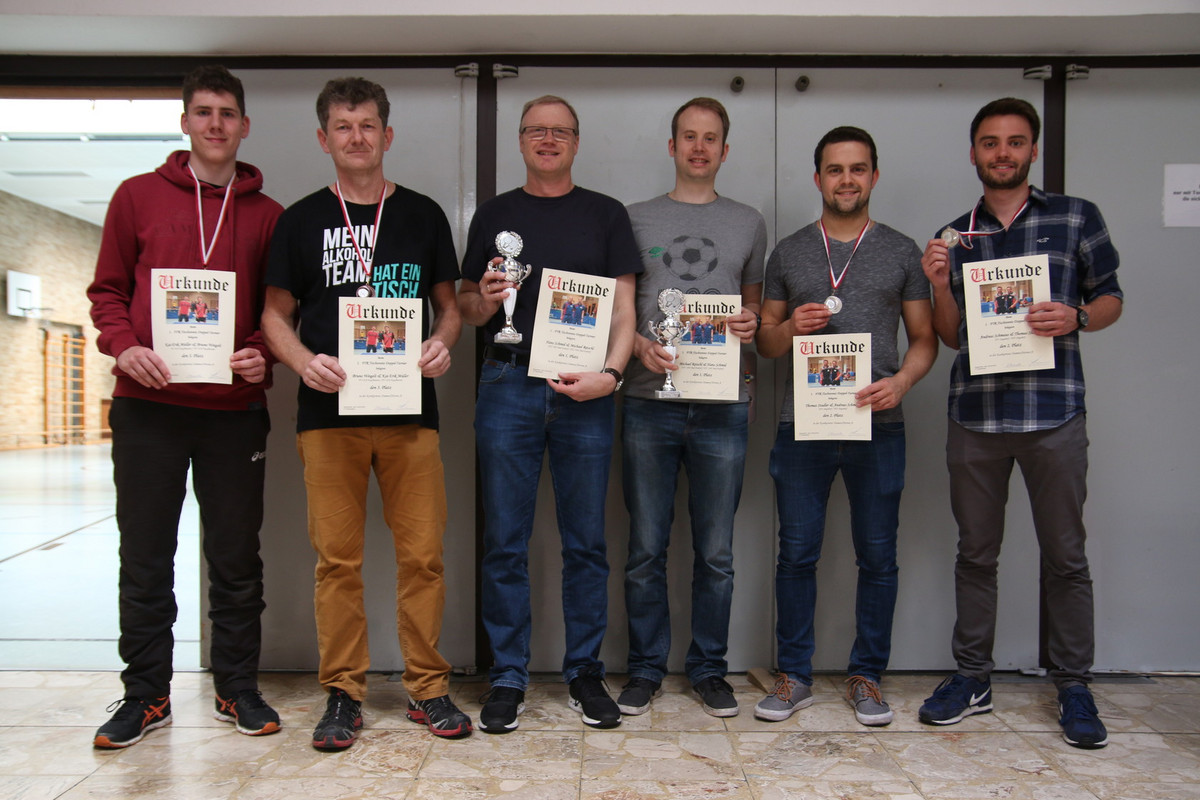 In der A-Klasse der Herren setzten sich am Ende die Favoriten ausnahmslos durch. Letztlich war es das Duo Schmid/Reischl, das den Titel gewann. Das Bad Endorfer Duo, das in der Vorrunde in der Gruppe A bereits an erster Stelle lag, gewann mit 3:0 Sätzen gegen die Sieger der B-Gruppe Schmaus/Stadler (TSV Siegsdorf).