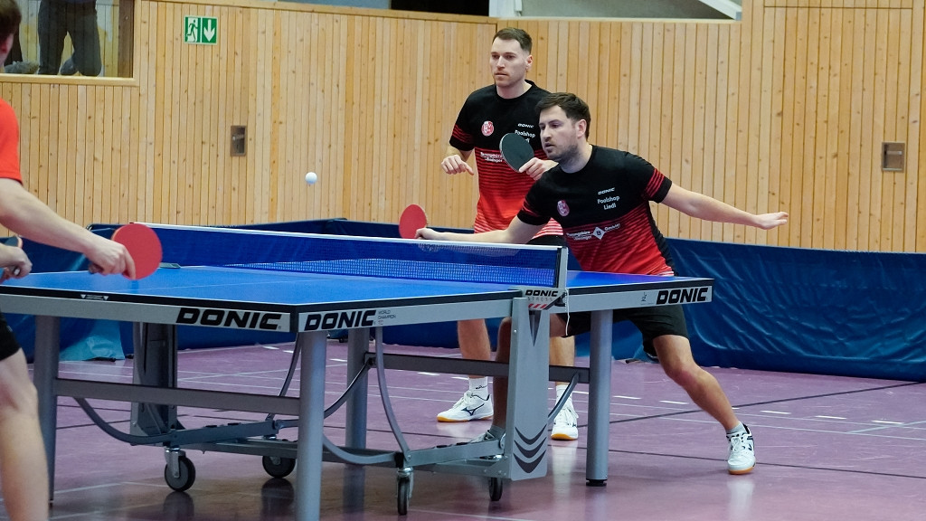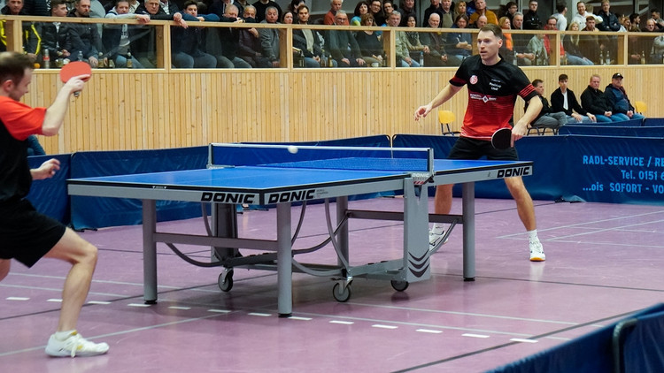 Die Miltacher Spitzenspieler konnten die ersten beiden Sätze mit 11:9 und 11:7 für sich entscheiden, aber Jancovic/Erifiu kamen mit 11:8 und 11:4 und zurück, so dass es in den Entscheidungssatz ging, den die Haiminger unter großem Jubel der Zuschauer mit 11:7 für sich entscheiden konnten, so dass es nach den Doppeln 2:0 für Haiming stand, da Lindner/Vihl gegen Beran/Hielscher ohne Probleme mit 3:0 bezwangen.
