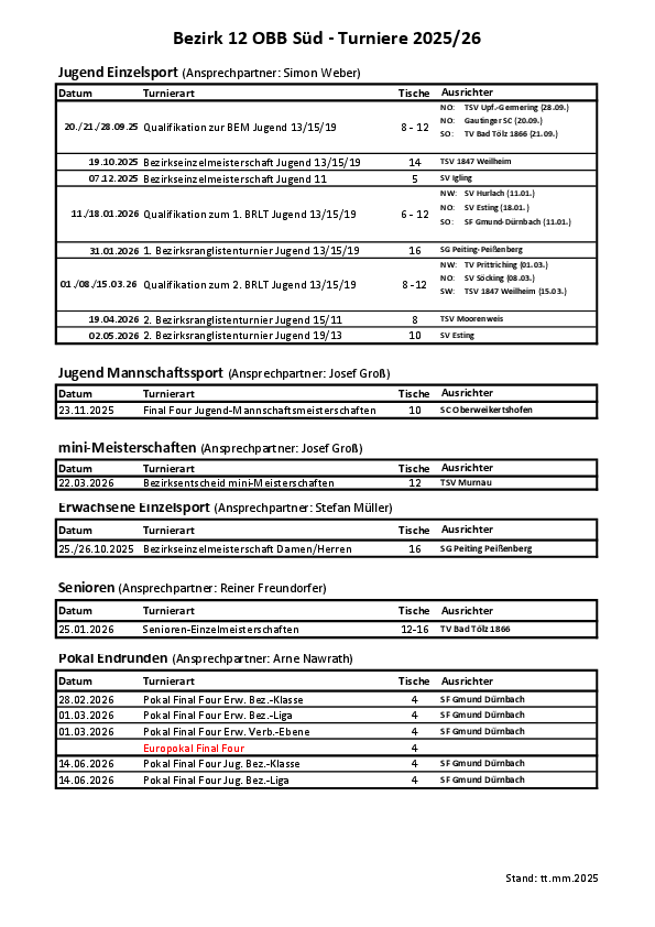 Am Sonntag, den 23.11.2025 fand das Final Four der Mannschaftsmeisterschaften unter bewährten Bedingungen beim SC Oberweikertshofen statt.