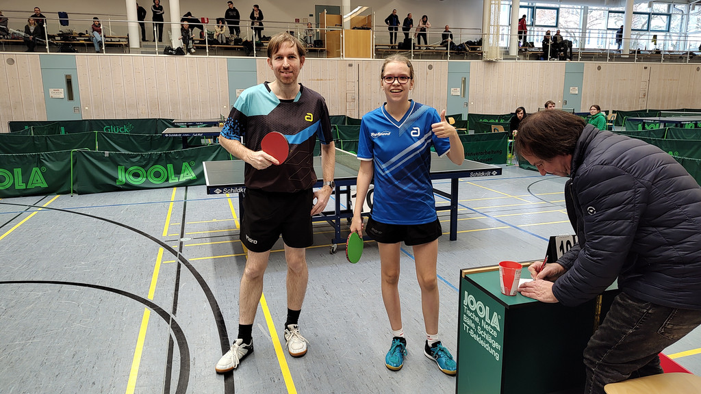 Zum ersten Mal überhaupt spielten Jürgen Mayrock vom SC Egling und Johanna Fischer vom SV Esting (beide kennen sich aus TT-Races) zusammen das Mixed-Doppel und sorgten für eine faustdicke Überraschung. Im ersten Spiel gaben sie noch einen Satz ab und marschierten dann einschließlich Finale nur noch mit 3:0-Erfolgen durch.