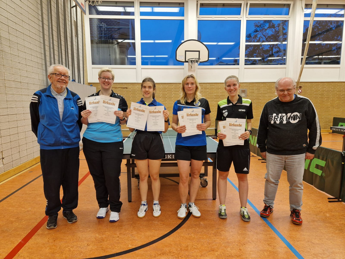 Damen: A-Klasse: 1. Tanja Türk (SV Mistelgau). B-Klasse: Lea Landel (TTC Mainleus). C-Klasse: 1. Mona Schuster (ATS Kulmbach), 2. Alina Gemeinhardt (TTC 1990 Hof), 3. Kathi Deschan (TTC Stammbach), 4. Alexandera Dressel (ATSV Reichenbach). Doppel: 1. Gemeinhardt/Schuster. hf / Hans Franz