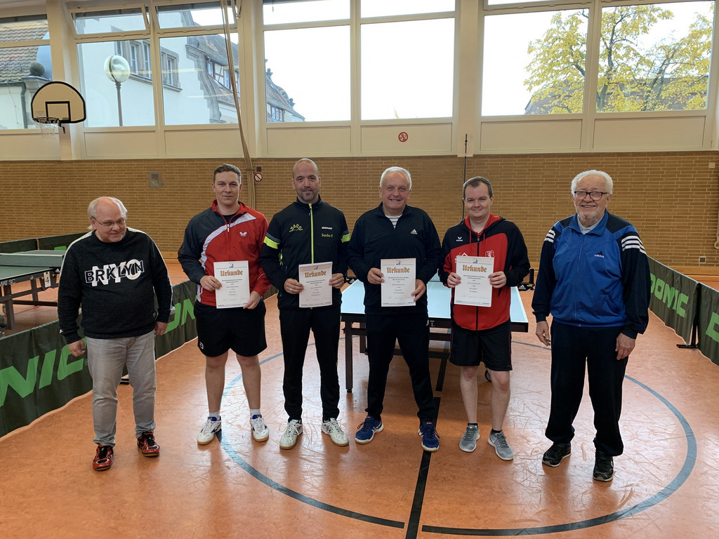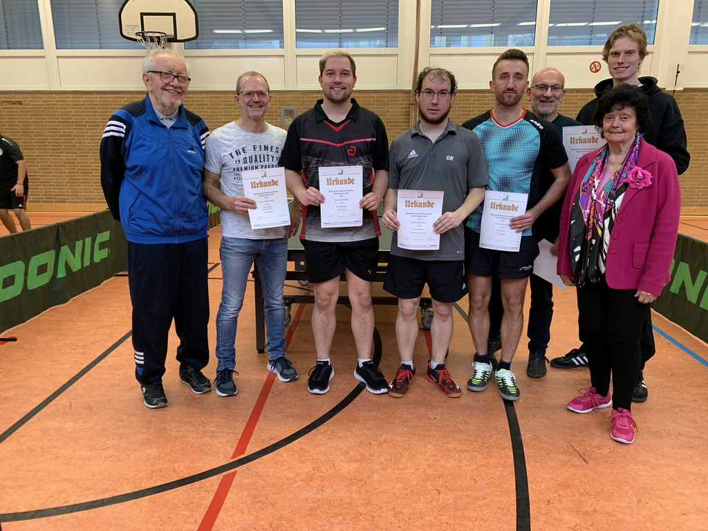 B-Klasse: 1. Oliver Reinhardt (SV Rothenkirchen), 2. Kevin Kokocinski (TTC Creussen), 3. Matthias Hoderlein (TTC Mainleus) und Rico Roquette (1. FC Bayreuth)