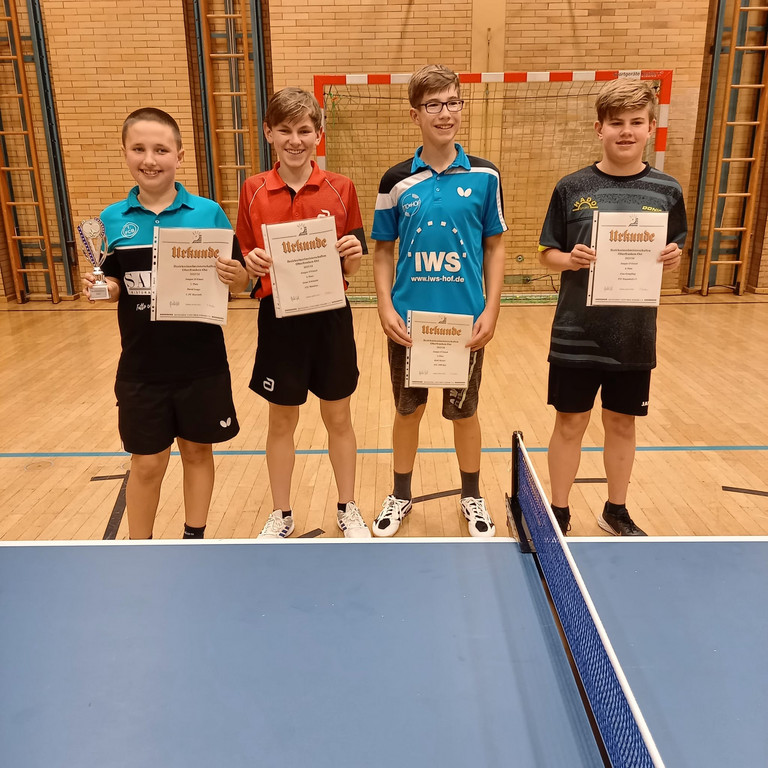 Bei den Jungen 13 war Michael Wegner (CVJM Naila) nicht zu schlagen, setzte sich souverän vor Lukas Hansel (TTC Stammbach), Fabian Ebert und Jonas Heller (beide CVJM Naila) durch. Im Doppel siegten Wegner/Ebert im Endspiel gegen Hansel/Heller. Bei den Mädchen 13 gewann Hanna Schneider (TTC 1990 Hof) vor Jella Hesse und Ida Kolinsky (beide TTC Rugendorf). Den Titel im Doppel holten sich die beiden Rugendorferinnen.