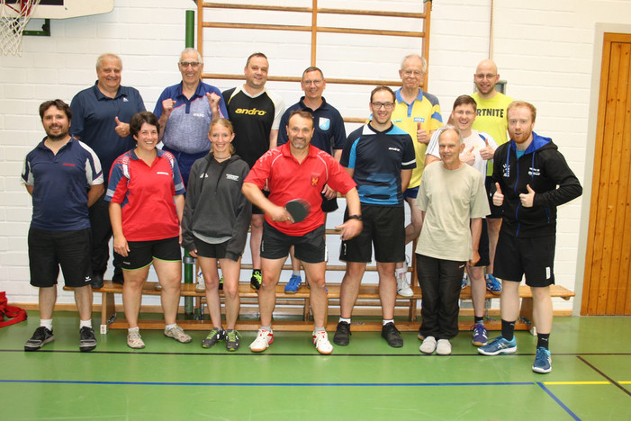 In der Altenkunstadter Kordigasthalle trafen sich die Trainer aus Ost und West Oberfranken am 24.06. und 25.06.2023 zur C-Trainerfortbildung unter der souveränen Leitung von Nico Küspert (rechts). Nach getaner "Arbeit" und der Kenntnis für weitere vier Jahre das Traineramt zu übernehmen, stellten sich die Teilnehmer zu einem Gruppenfoto auf. Man kann der Truppe entnehmen, das man bei der Fortbildung viel Freude gehabt hat.