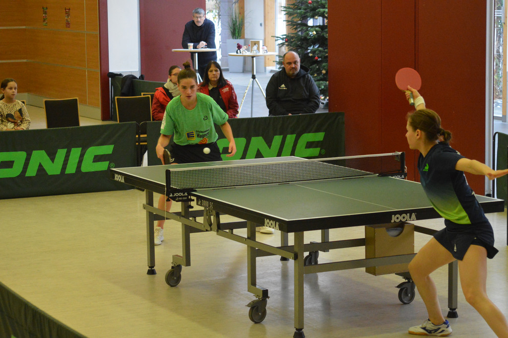 Den Start machten die Eröffnungsdoppel. Mit einem 11:9;11:9;11:7 Sieg, markierten Solodenko/Rios gegen Zhmudenko/Teufl den ersten Punkt für Bad Rodach. Bei ihrer Drei-Satz-Niederlage gegen Zahradnik/Walter war für Schirm/Schirm bis auf den 3.Satz (11:13), wenig zu holen und der Punkt ging verdient an die Gäste. Nach den anfänglichen Spielen standen sich nun die Topspielerin der Heimmannschaft und die Nummer 2 des Gastteams bei einem Stand von 1:1 gegenüber. Nach eher keinem so guten Start in das Spiel und Verlust des ersten Satzes gewann Anastasiia Solodenko die folgenden drei Sätze und somit die gesamte Partie noch mit 3:1. Nicht so gut lief es dagegen danach für Sophie Schirm beim 4:11, 6:11, 5:11 gegen Iana Zhmudenko, was gemäß dem TTR-Werten nicht verwunderlich war. Beim Stand von 2:2 ging es nun weiter, als das untere Paarkreuz an die Tische trat.