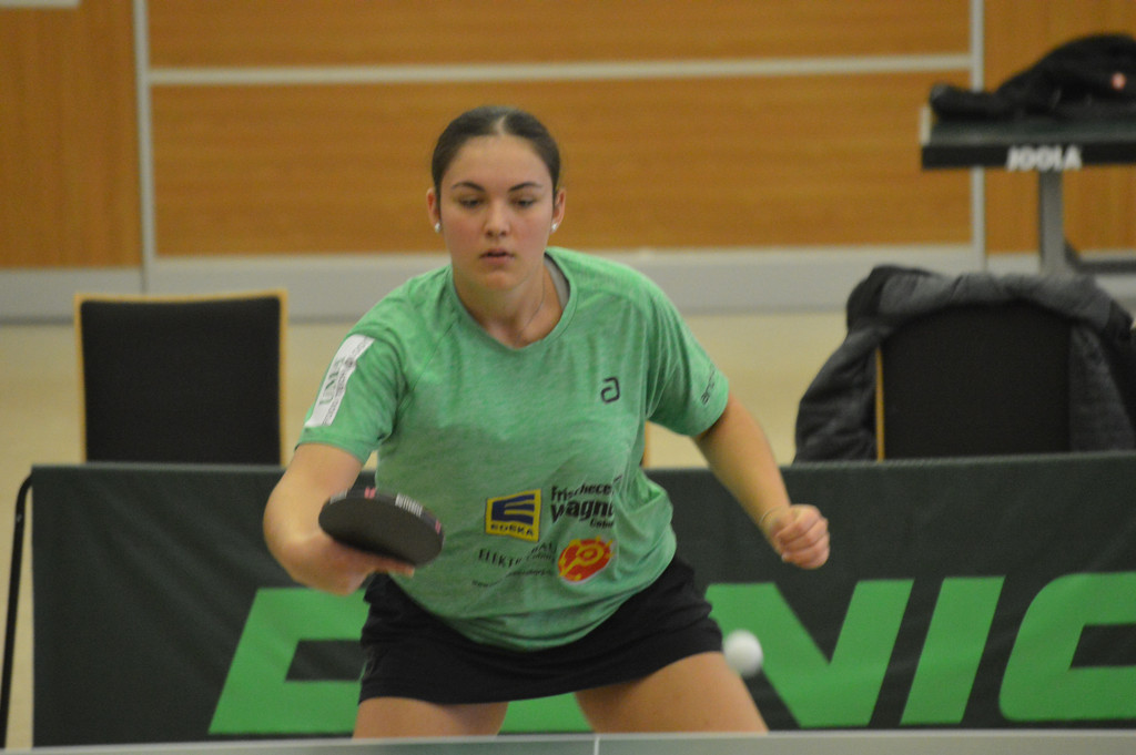 Enttäuscht dürfte Sophie Schirm über ihre 2:3 Niederlage gegen Katharina Teufl gewesen sein. In den ersten vier Sätzen war hier ein Spiel auf Augenhöhe zu sehen. Dann wollte der jungen Bad Rodacher Spielerin einfach nichts mehr gelingen und ihre Bälle verfehlten, wie am bereits am Vortag, reihenweise knapp ihr Ziel.
