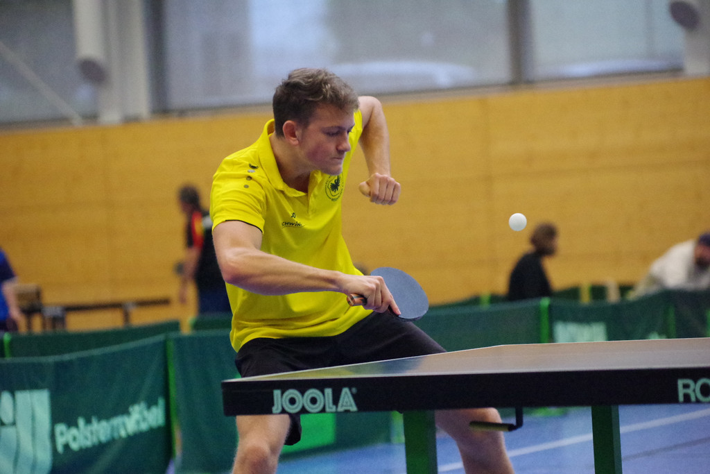 Die Gäste aus dem Fichtelgebirge waren zwar chancenlos, hätten aber das Endergebnis zumindest um zwei Zähler etwas günstiger gestalten können. Doch zum einen ließ sich das heimische Doppel Joel Fischer/Duckstein trotz einer 2:11-Auftaktpleite nicht aus der Ruhe bringen und trumpfte in diesem über die volle Distanz von fünf Durchgängen gehenden Match im Entscheidungssatz mit 11:3 auf. Zum anderen behielt im zweiten 5-Satz-Spiel Mirko Duckstein gegen Thomas Rotsching die Nerven. Nach einem 8:11, 11:4, 11:3 und 6:11 behauptete sich Duckstein in der Verlängerung mit 13:11. Zu Beginn der Partie war Spitzenspieler David Fischer im Doppel mit Yannick Rauscher und im ersten Tageseinzel ohne Satzverlust geblieben. Nicht so gut lief es für seinen Bruder Joel, der sich für die 2:3-Hinspielniederlage an den TSV-Spitzenmann Alexander Heinold nicht revanchieren konnte und mit 9:11, 11:4, 10:12 und 7:11 unterlag. Nicht den Hauch einer Chance ließ Rauscher seinen Gegenüber Manfred Fischbach (11:5, 11:6, 11:2) und erhöhte auf 4:1. Einen nun möglichen Gästepunkt verhinderte Duckstein mit dem bereits erwähnten 3:2-Sieg gegen Rotsching. In der Auseinandersetzung zwischen den beiden Spitzenspielern D. Fischer und Heinold, hatte der junge „Adler“ zunächst noch Sand im Getriebe (5:11). Doch dann war der 17-Jährige nicht mehr zu stoppen (11:0, 11:3, 11:5) und machte mit dem damit einhergehenden 6:1-Vorsprung vorzeitig den Gesamtsieg perfekt. In den verbleibenden drei Paarungen ließen auch Joel Fischer, Rauscher und Duckstein nichts mehr anbrennen und schraubten das Resultat auf 9:1 hoch.