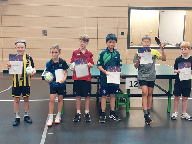 Unter den zwölf Jungen der AK 11 schaffte David Hampp als Gruppensieger den Sprung ins Finale der besten Sechs. Hier ließ er dreimal mit einem 3:0 nichts anbrennen, musste aber zweimal bei seinen 3:2-Satzerfolgen auf der Hut sein. Auf dem Treppchen stand noch als Drittplatzierter Bislim Dvorani aufgrund des geringfügig besseren Satzverhältnisses als der punktgleiche Rangvierte. Da in dieser Kategorie die besten Sechs sich für den nächsten Wettbewerb qualifizieren, gehört diesem Sextett auch noch Karl Lungkwitz an. Über die Gruppenphase nicht hinaus kam Theo Kalb (TSV Scherneck), der nach Abschluss der Platzierungsspiele den neunten Rang belegte.