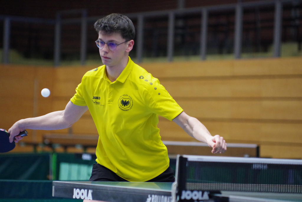 Obwohl das Heimteam bereits zu vier Siegen und zwei Unentschieden kam und noch den zweiten Rang belegt, wurde sie von den „Adlern“ abgefertigt. Erst als die Gäste schon mit 4:0 in Front lagen, kam Schwürbitz zum ersten Punkt. Doch prompt machten Noah Leffer und Christian Leffer mit den Zählern fünf und sechs den Auswärtserfolg perfekt. Den zweiten und zugleich letzten Punkt für die Einheimischen fuhr Tobias Schneider nach vier knappen Satzresultaten (11:9, 12:10, 9:11, 11:9) gegen Manuel Bojer ein. In der Schlussphase stellten Noah Leffer und Andre Fischer, der erstmals für den fehlenden Simon Grönert zum Einsatz kam, den Kantersieg her.