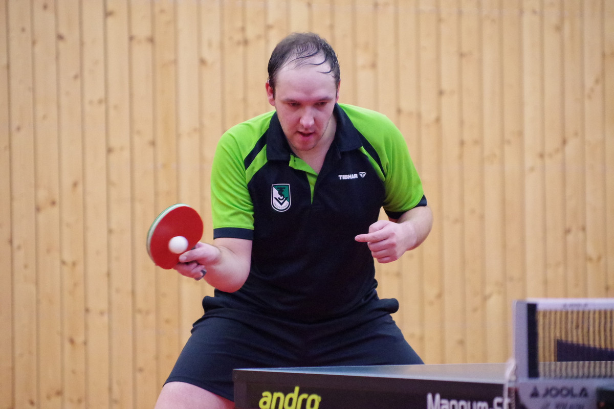 Mit dem Gewinn der beiden Eingangsdoppel sowie eines unangefochtenen Sieges der Nummer eins, Michal Bozek, und einem 4-Satz-Erfolg des ins vordere Paarkreuz aufgerückten Markus Gundel, stand ein vielversprechender 4:0-Vorsprung zu Buche. Danach lag aber der erste Gästezähler in der Luft, denn Fabian Markert befand sich gegen Fritjof Bönold im Rückstand (8:11, 11:1, 10:12). Doch mit einem 11:6 und 11:8 legte er den Hebel um und erhöhte auf 5:0. Gabriel Funk startete gegen Sven Schaub sehr aussichtsreich (11:8, 11:5), musste aber nach zwei 9:11-Niederlagen den 2:2-Satzausgleich hinnehmen. Im Entscheidungssatz behielt er aber die Nerven und brachte mit einem knappen 11:9 den Heimsieg vorzeitig unter Dach und Fach. Über die volle Distanz musste auch Bozek, doch auch er konnte wie zuvor Markert nach Rückstand das Ruder noch herumreißen (11:6, 6:11, 6;11, 11:9, 11:9 gegen Eric Stopfer).