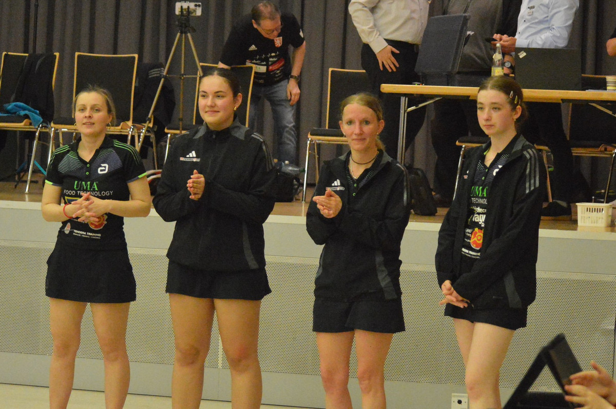 Nach dem letzten Ballwechsel versammelte sich die Mannschaft vor den Zuschauern. In einem bewegenden Moment ergriff Valerija Mühlbach das Wort und bedankte sich im Namen des gesamten Teams bei den zahlreichen Fans, den Verantwortlichen, den Helferinnen und Helfern sowie allen Unterstützern, die die Mannschaft durch die Saison begleitet hatten. Ihre Worte trafen den Kern eines Nachmittags, der von Zusammenhalt und Dankbarkeit geprägt war.