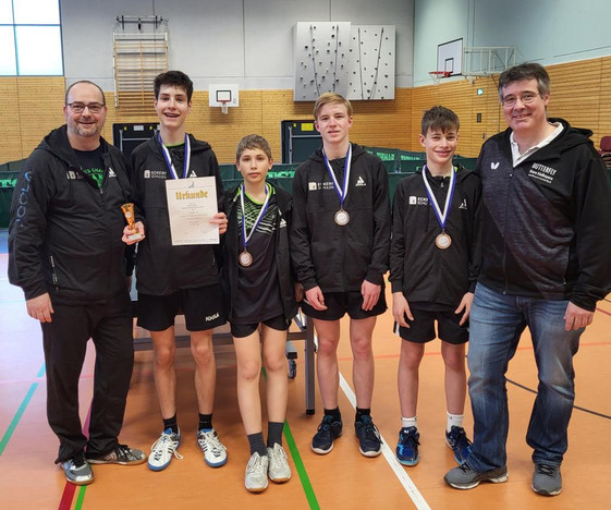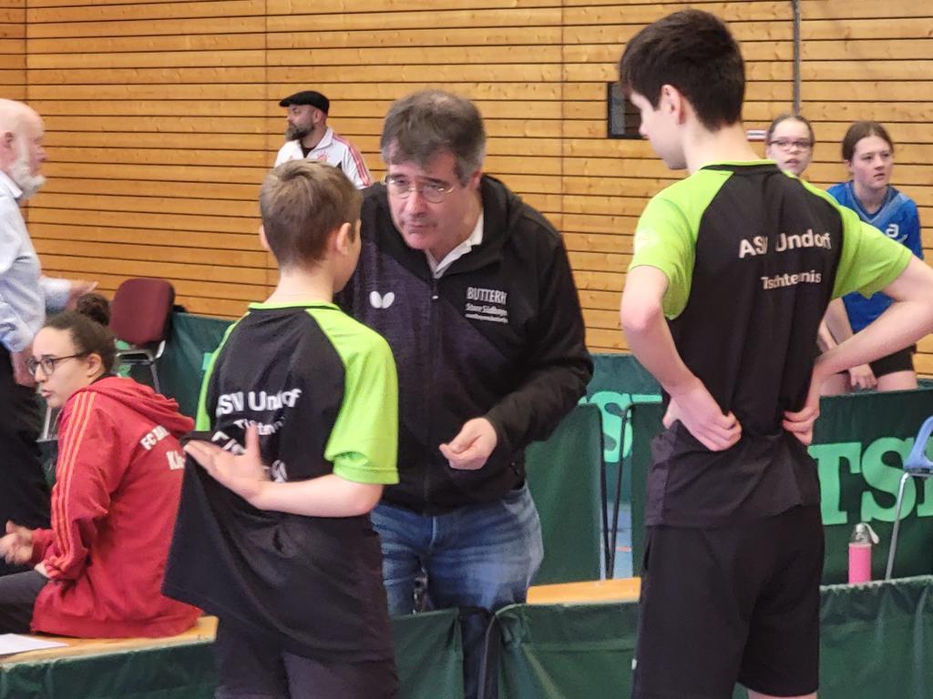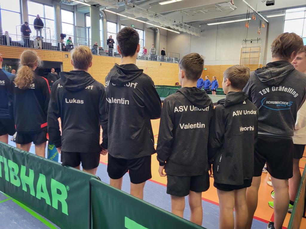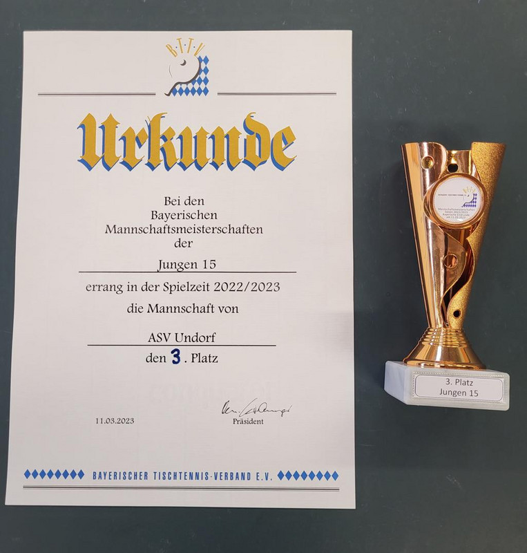 In drei Mannschaftswettkämpfen gegen den TSV Bad Königshofen (3:7), CVJM Naila (9:1) und den FC Bayern München (1:9) erspielten sich die U15 Jungen des ASV Undorf mit dem souveränen Sieg gegen CVJM Naila den so ersehnten Podestplatz. Zu erwähnen sind im Spiel gegen Bad Königshofen die hervorragenden Leistungen von Heorhii Tarnavskyi, der die Nummer 2 Paul Göhring aus Bad Königshofen besiegen konnte, sowie der Sieg von Valentin Dinauer im hinteren Paarkreuz gegen Tim Gartenschläger zum zwischenzeitlichen 3:3, Endstand 3:7. Im Spiel gegen Naila muss die geschlossene Mannschaftsleistung hervorgehoben werden, Endstand 9:1. Es wurden alle Einzel gewonnen. Abschließend konnten die Jungs gegen den FC Bayern München dann unbeschwert aufspielen. Neben Valentin Sobek, der gegen Andis Qeku (#1 des FC Bayern) mit nur 2:3 unterlag überzeugte vor allem Lukas Duscher. Er lieferte in seinem Einzel gegen Arnis Qeku überragend ab und fuhr verdient den Ehrenpunkt ein, Endstand 1:9.