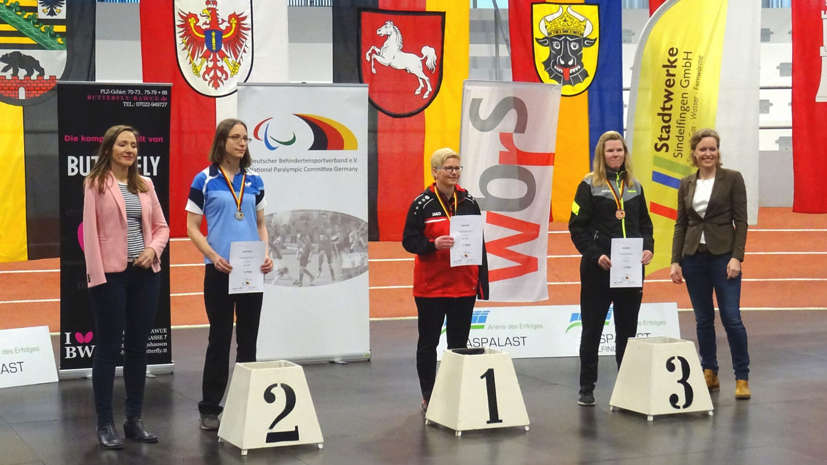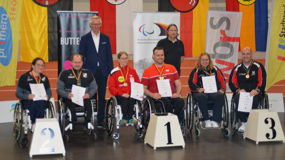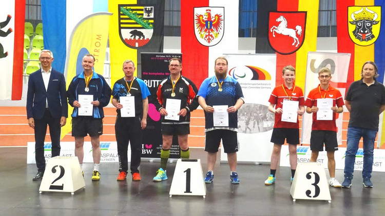 Bronze: zweimal Mario Krug (RSV Bayreuth, Einzel offene Klasse 6-AB und WK 10), Bianca Neubig/Werner Burkhardt (beide RSV Bayreuth, Mixed WK 1-5), Anne Weiglein (Inklusion Sport Würzburg, WK 11 Mannschaft)