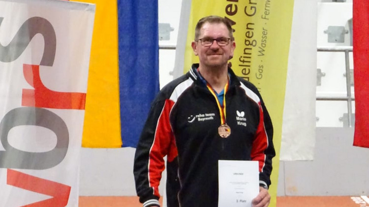 Die amtierenden Deutschen Meister im Doppel, Mario Krug und Frank Zeller, wollen in der WK10 /AK II ihren Titel verteidigen. Das gilt auch in der Einzelkonkurrenz für Mario Krug, während Frank Zeller mit Petra Bauer (Hessen) im Mixed antreten wird. Als vierter Spieler vom RSV Bayreuth wäre eigentlich Ekkehard Gerlicher dabei gewesen. Doch er musste krankheitsbedingt kurzfristig absagen. Zur Erinnerung: vor zwei Jahren stand er ganz oben auf dem Treppchen und bezeichnete die Goldmedaille als Sechser im Lotto. Nun kann er von zuhause aus nur den Kollegen die Daumen drücken.