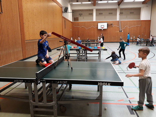 Honorartrainer Roland Lütkenhaus, der auch die Idee zu dieser Veranstaltung hatte, sowie die Vereinstrainer Christian Hochstatter und Marvin Hillenbrand betreuten die Schülerinnen und Schüler. An zehn verschiedenen Stationen konnten sie spielerisch Tischtennis erleben.