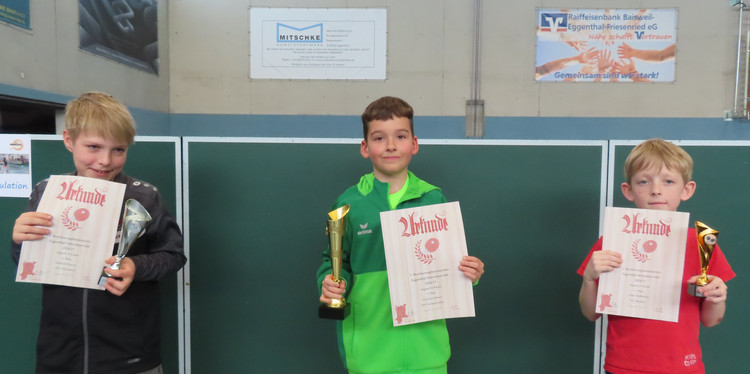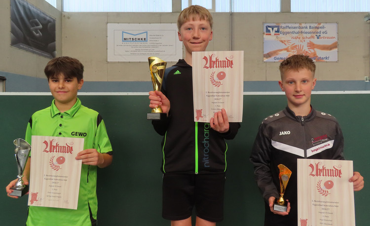 Bei den Jungen 11 sicherte sich der punktestärkste Johannes Remer (TSV Marktoberdorf) mit einer makellosen Bilanz den Turniersieg vor Emilian Wagner (TSV Ebersbach) und Jonas Mühlnikel (VfL Buchloe). Favorit Simon Lamm (TSV Durach) siegte bei den Jungen 13 vor Vincent Kraus (TSV Leuterschach) und Moritz Lausenmeyer (TSV Marktoberdorf) den Titel.