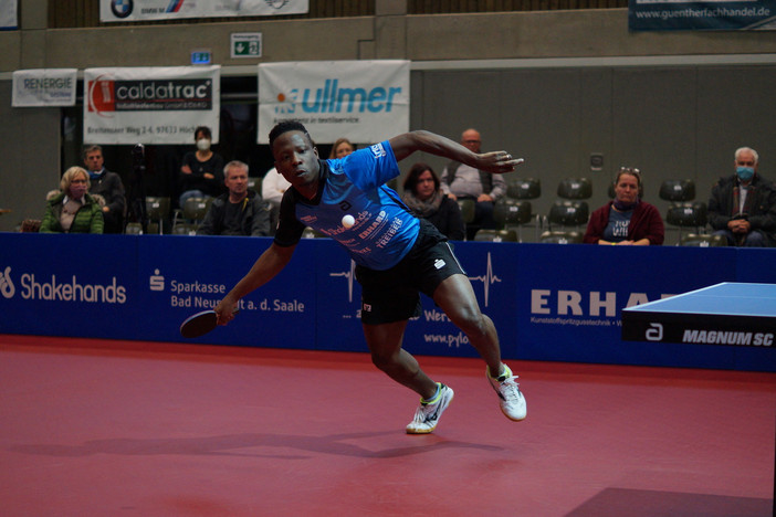 Aufgedreht wie ein Matchbox-Auto holte er sich den vierten Satz mit 11:8 und war völlig aus dem Häuschen. He, da war doch noch ein Satz zu spielen! Wie nur kann man von dieser Wolke herunter eine Minute später in einem fünften Satz landen? Unaufhaltsam davon eilend Richtung 2:0-Vorsprung für seine Mannschaft – über 8:2 zum 11:6. Es war vielleicht sein bestes Spiel in dieser Halle. Und das nach dem relativ unbedeutenden Challenger-Turnier von Mittel-Bieberach unter der Woche. Nach der Pause unterlag Abdel Salifou dem mit internationalen Titeln und Medaillen ausgezeichneten Portugiesen Tiago Apolonia in drei Sätzen. Das darf ein Salifou verlieren. Aber in der Form von vor einem Jahr, im Dress von Neu-Ulm gegen Oikawa, hätte er anders performt.