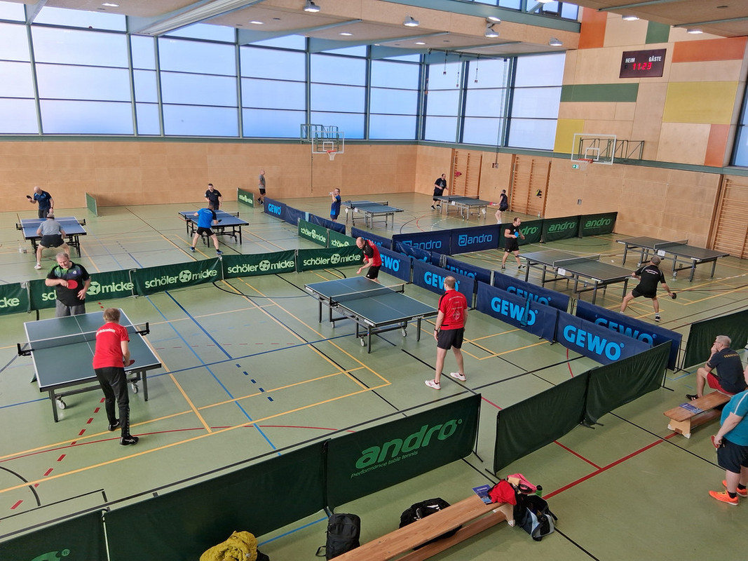 Festgestellt wurde von allen, die nach Schweinfurt gekommen waren, dass die Halle der Wilhelm-Sattler-Realschule bestens für das Seniorenturnier geeignet ist. Etwas schwieriger war die Zusammenstellung der Turnierteilnehmer in die einzelnen Gruppen und somit auch mal der Eindruck, warum nicht permanent die 9 vorhandenen TT-Tische belegt waren. So mussten bei den Senioren 40-60 die A- und B-Spieler zusammengelegt und bei den über 65-jährigen Teilnehmern sogar alle in eine Gruppe zusammengefasst werden. Spannende und faire Spiele konnte der BV beobachten, da die Turnierleitung, Reiner Hülbig, von Jugendlichen der RV Soli Schweinfurt sehr stark unterstützt wurde. Das Schweizer-System kam in diesem Jahr nur bei den Senioren 65 zum Einsatz. Auch dies wäre aber im Spiel Jeder gegen Jeden möglich gewesen.