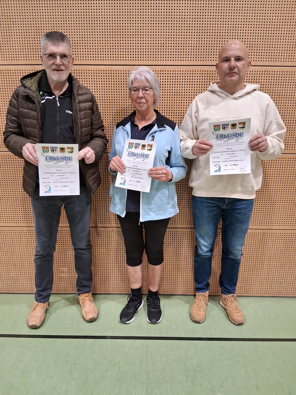 Die Bezirkseinzelmeisterschaft der Seniorinnen und Senioren in den Leistungsklassen am Sonntag, 11.01.2026 in Schweinfurt war mit 35 Teilnehmer/Innen im Vergleich zum Vorjahr mit nur 4 Senioren/Innen besser besucht. Vielleicht lag es an der Wettervorhersage hinsichtlich des Tiefs Elli oder an den gefährlichen Straßenverhältnissen in bestimmten Regionen. Dem RV Soli Schweinfurt gilt hier unser herzlichstes Dankeschön für die Ausrichtung und die Versorgung der Turnierteilnehmer/Innen sowie den wenigen Zuschauern mit Essen und Getränken.