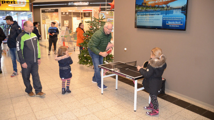 Einkaufen und danach noch eine Runde Tischtennis spielen – diese Möglichkeit ließen sich viele Supermarkt-Kunden, egal ob Jung oder Alt, nicht entgehen und sorgten für eine dauerhaft hohe Frequenz beim Schnuppermobil-Equipment. Dazu zählen neben einem Wettkampftisch auch die Midi-Variante.