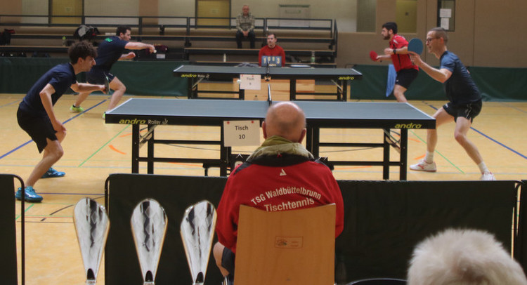 Thüngersheim Rund sieben Stunden spannendes und oft hochklassiges Tischtennis war am Sonntag, 3. März, in der Halle des TSV Thüngersheim geboten. Dort spielten zehn Mannschaften im Final-Four-Finale um den Pokalsieg in den Klassen der Verbandsebene Herren, Bezirksligen Herren und Bezirksklassen Herren. Dabei holte die TSG Waldbüttelbrunn mit ihrer ersten und zweiten Mannschaft die Titel bei der Verbandebene und den Bezirksligen. Die TG Höchberg wurde Pokalsieger bei den Bezirksklassen.