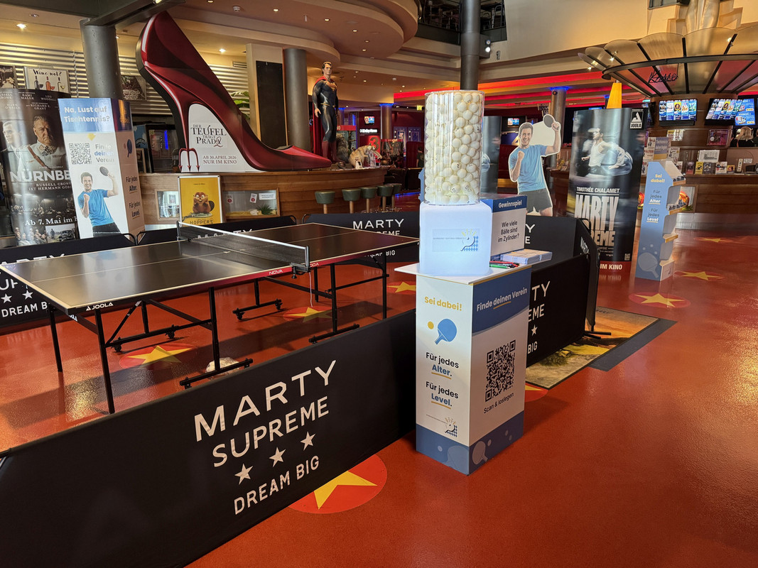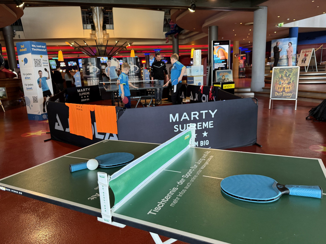 Auch wenn das sonnige Wetter am Wochenende für etwas ruhigere Kinozeiten sorgte, zeigte sich schnell: Tischtennis begeistert. Viele Besucher reagierten spontan mit einem „Oh cool – Tischtennis!“ und blieben stehen, um sich die Aktion anzuschauen, ein paar Fragen zu stellen oder ihr Glück beim Gewinnspiel zu versuchen.