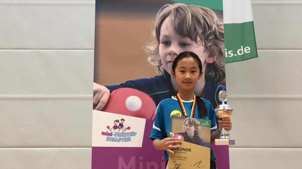 Mit einem Riesenerfolg endete das Bundesfinale der Minimeisterschaften für die 9-jährige Eva Xintian Gao vom TV Hofstetten in Berlin. Eva wurde Bundessiegerin, nachdem sie im gesamten Wettbewerb nur einen Satz abgab. Das Talent des TV Hofstetten startete nach dem Sieg beim Verbandsentscheid in Bayern beim Bundesfinale im Wettbewerb mit 19 weiteren Starterinnen.