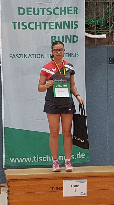 Nach 3:0 Siegen und 9:2 Sätzen in der Vorrunde erreichte die 16-jährige Haslocherin die KO-Runde. Dort schaffte sie nach einem 3:1 gegen Sophie von Buttlar (DJK Annen) und einem 3:2 gegen Emma Bruch vom TSV Schwabhausen das Halbfinale. Hier gelang ihr ein überraschend klarer 3:0 (11:7, 11:2 und 11:3) Erfolg gegen Leonie Hildebrandt (TSV Radeburg). Auch im Finale blieb sie beim 11:7, 11:7 und 11:9 gegen Luisa Bruch (TSV Schwabhausen) ohne Satzverlust.