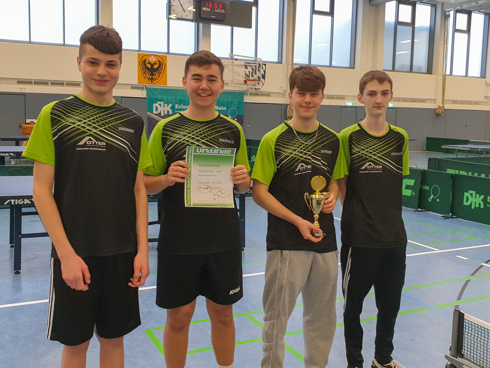 Die DJK Erlenbach war am Wochenende 29.02./01.03.2020 Durchführer der Final Four der Pokalrunde 2019/20 im Tischtennisbezirk Unterfranken-West. Die Sporthalle zeigte sich für diese Wettkämpfe erstklassig geeignet und das äußere Umfeld war ebenfalls mit Versorgung der Teilnehmer und Zuschauer mit Imbiss und Getränken ohne Einschränkung sehr gut.