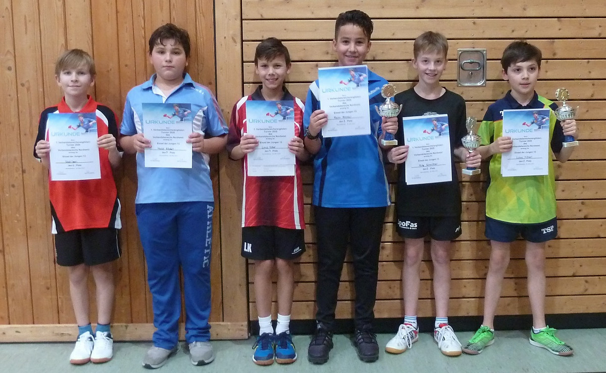 Jungen 13: 1. Lukas Krönert (DJK Gänheim), 2. Fritz Schmittner (TV Hofstetten), 3. Karim Hinnawi (TuS Aschaffenburg-Damm), 6. Noah Stein (TTC Schimborn), 7. Noah Großmann, 11. Maxim Kammerzell (beide TuS Aschaffenburg-Damm).