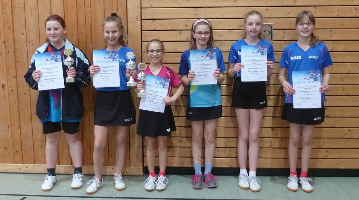Mädchen 13: 1. Ines Baumgartner (TSV Gerbrunn), 2. Elena Przyklenk, 3. Nina Ott, 5. Hannah Sander, 6. Isabell Sander (alle Viktoria Wombach).